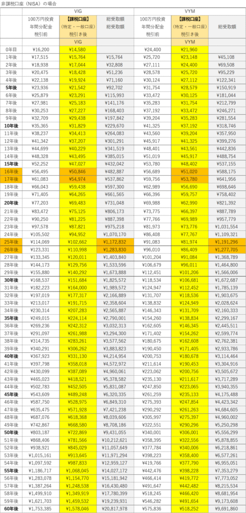 「VIG」「VYM」分配金予測(2026.1.14 更新)
