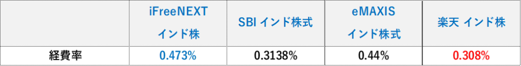 コストが最も安いのが、楽天・インド株Nifty50インデックス・ファンドです
