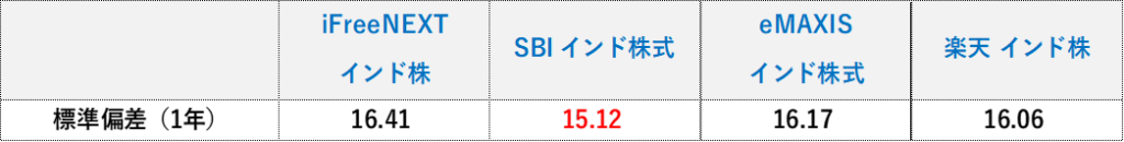 標準偏差は「SBIインド」が、ややいいですが、その差は 誤差レベルです