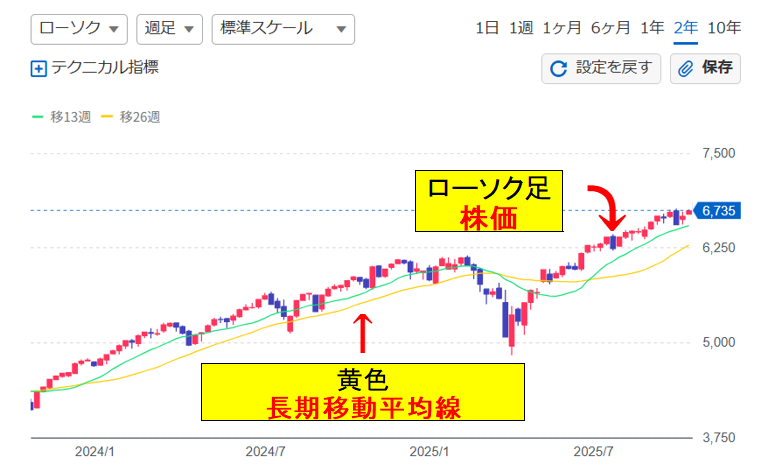基本、買いのタイミングは、株価が移動平均線より下の時です