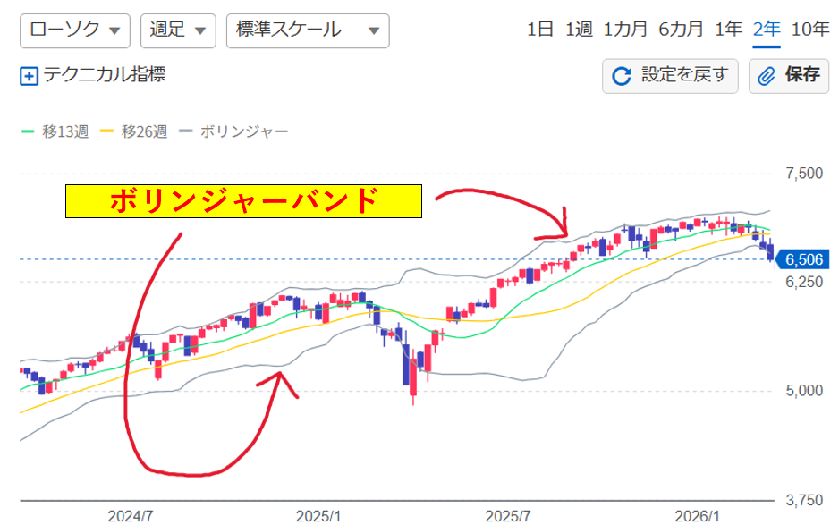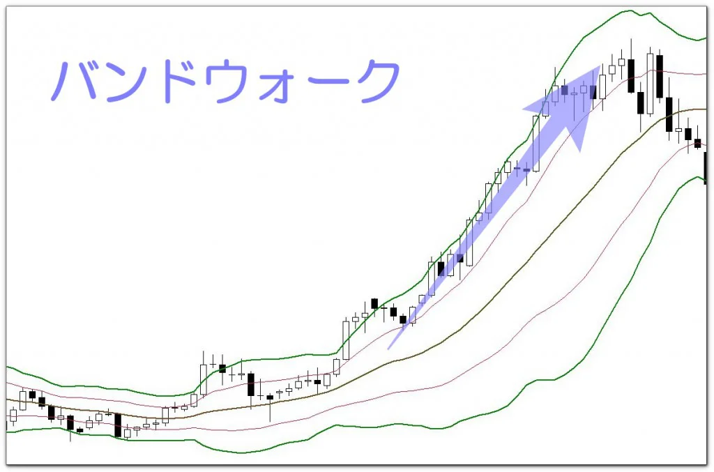 バンドウォークとは、±2σの ボリンジャーバンドに沿い、株価が推移することです