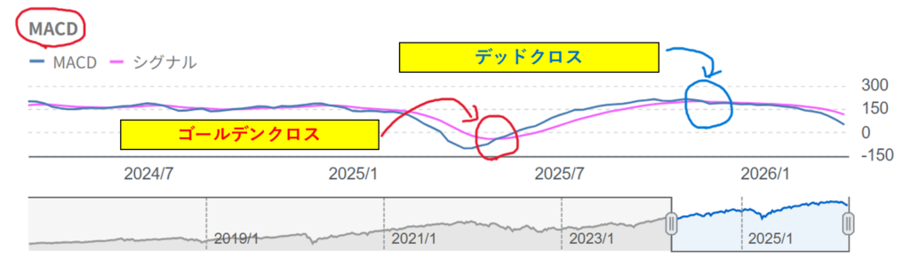MACD線がシグナル線を 下回る時が