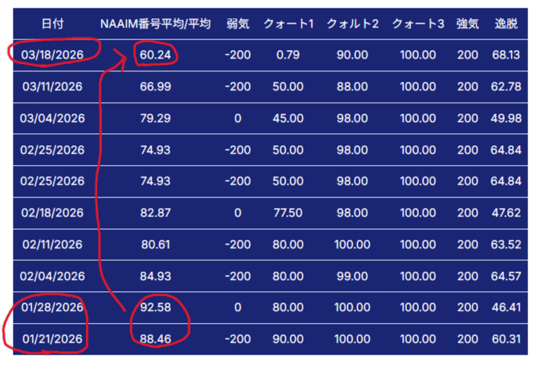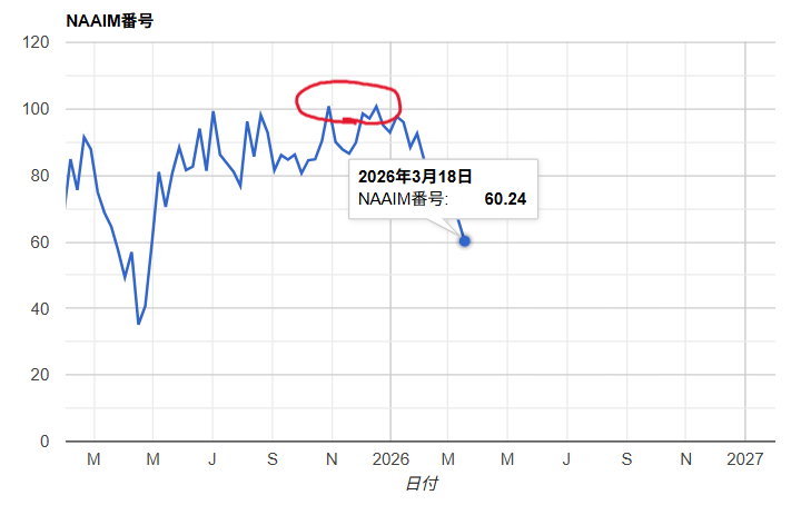 NAAIM Exposure Index – The National Association of Active Investment Managers – NAAIM より転用(2026.3.23)