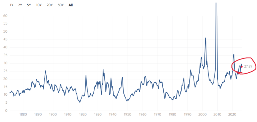 S&P500の実績PERは、現状 約30倍と かなりの割高です