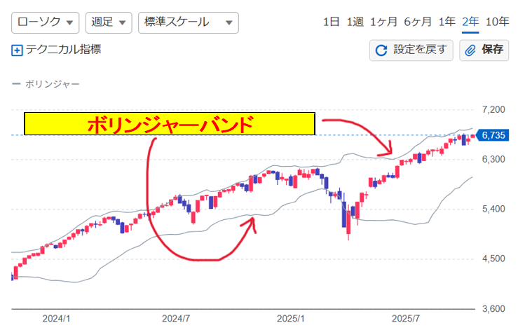 株価がボリンジャーバンドの上の線に近づけは 売りのサイン