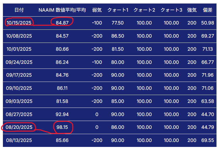 「NAAIM指数」とは、米国のアクティブ運用を行う ファンドマネージャーの、株式市場への投資割合を測る指数です