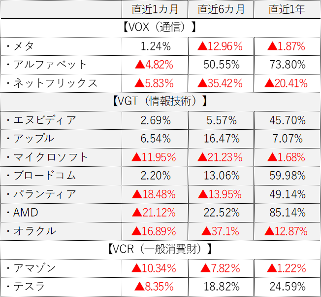 ① ここ数年の米国株を牽引したきた ハイテク株を多く含むセクターです