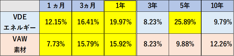 ② 3カ月以上は、12月末時点の年率トータルリターン(バンガード公式サイトより)