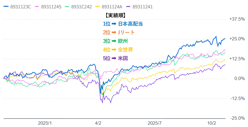「SBI・全世界高配当」の運用開始日が 2024.10.1 と ようやく 1年経過したばかりなので、1年で比較しました