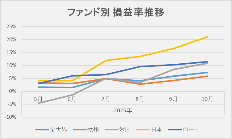 ① 最も実績がよく、今後の期待値も大きい「日本高配当」「Jリート」は、積立額を増やしました