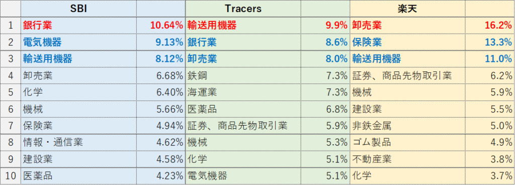 「楽天」は、上位3銘柄が 商社株で 安定感重視に見えます