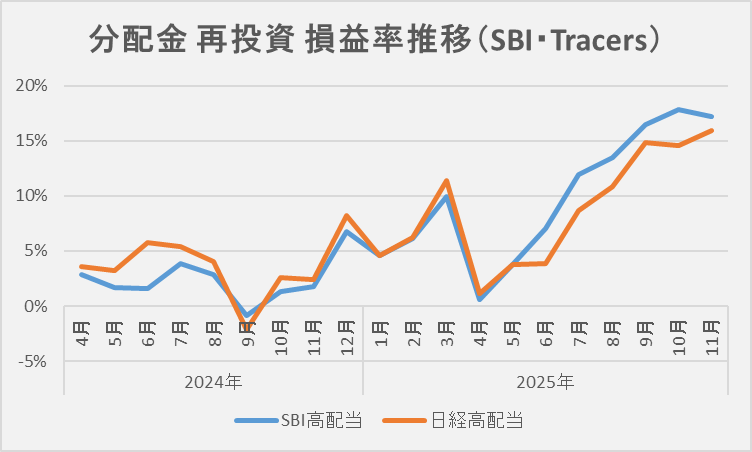 「SBI」「Tracers」のみの積立で「楽天」の積立は未実施です