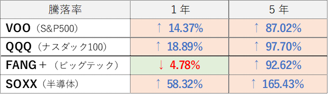 ① FANG+は、ETFで比較できなかったためETNで比較しました