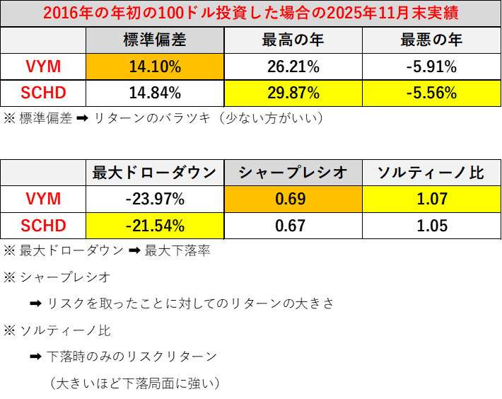 「SCHD」の方が、ディフェンシブ銘柄よりの印象です