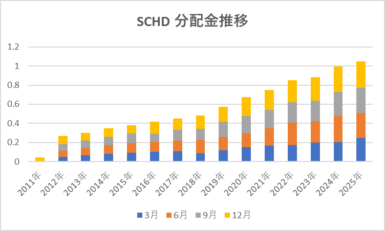 100万円『SCHD』に投資したら、将来、いくら分配金がもらえるのか?(分配金・増配実績からのシミュレーシ)