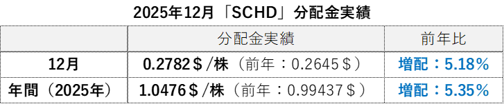 「SCHD」最新 分配金実績