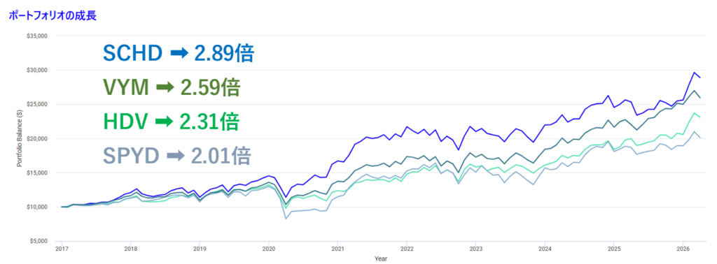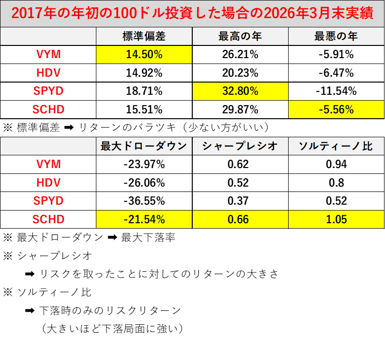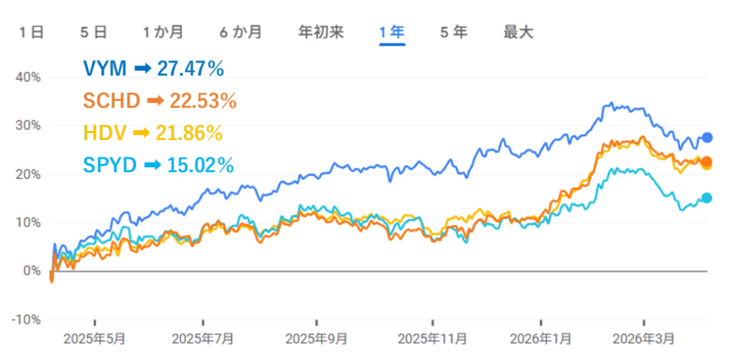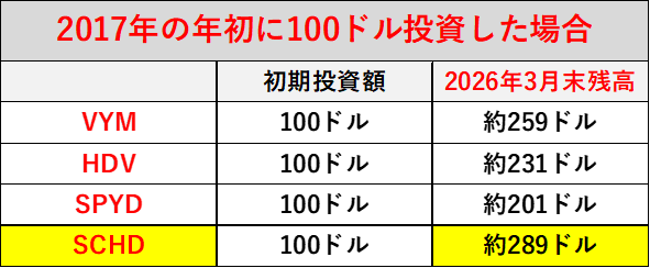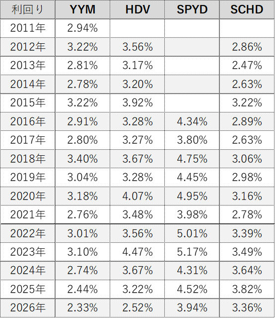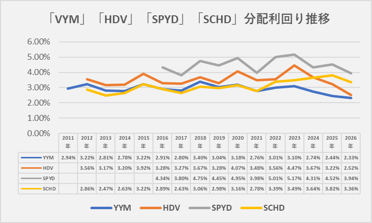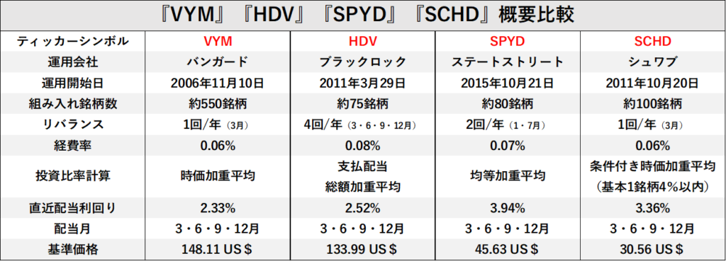 『VYM』『HDV』『SPYD』『SCHD』の